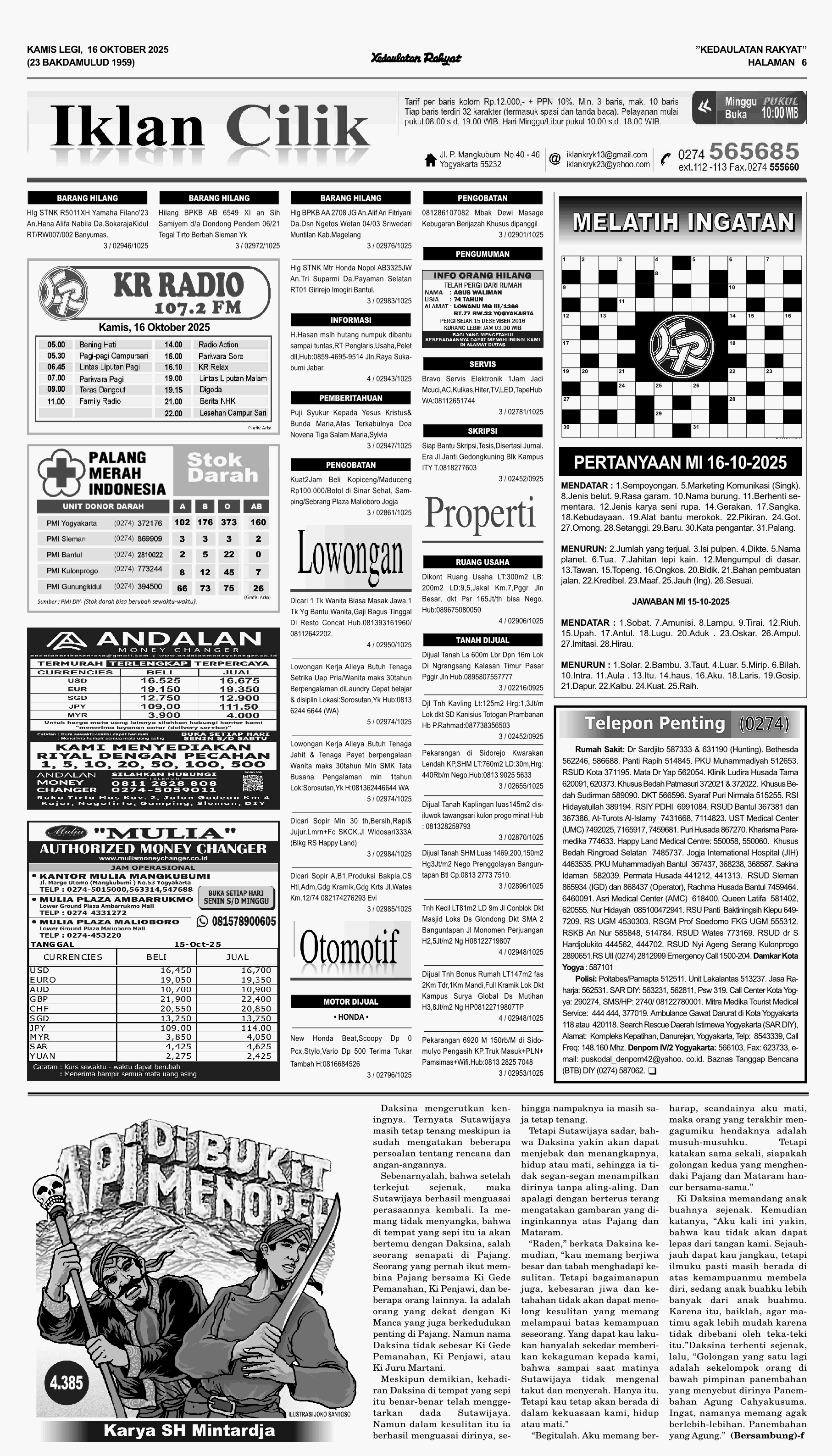Epaper KR : 16-10-2025 Versi PDF Hari ini, klik disini.